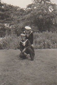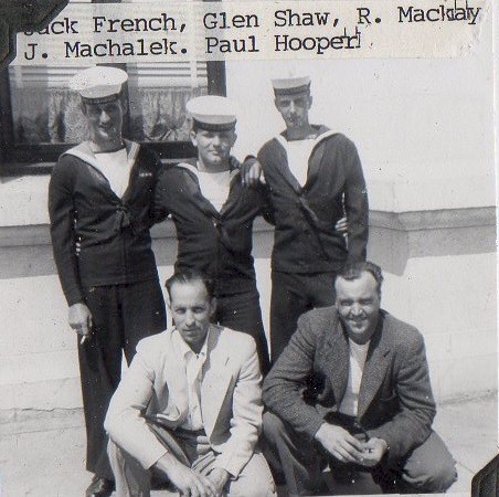 (JCS312) SLt Medland in front of Winnipeg Half Company building, RCNVR // Jim Silvester included this info with the photo - This was HMCS CHIPPAWA which was originally a storage building and where I served in Sea Cadets and enlisted in the RCNVR Nov 6 . 1939. (JCS313) SLt Griffin, Cdr Fraye in front of Winnipeg Half Company building, RCNVR (JCS314) Tommy Young - drafted from Winnipeg to Halifax, Feb 1940 (JCS315) George Burgess, Pat Griffin, Leo Simpson, Roy Sterling, Jack Ryan - drafted from Winnipeg to Halifax, Feb 1940 (JCS315) George Burgess - drafted from Winnipeg to Halifax, Feb 1940