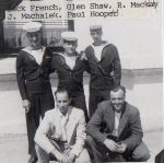 (JCS330 - JCS331) HMCS CHIPPAWA sailors Jack French, Glen Shaw, R. Mackay, J. Machalek and Paul Hooper // CHIPPAWA to NADEN for Naval Training - Aug 1956 From the collection of Jim Silvester, Petty Officer 1st Class Quarters Rating, RCN Courtesy of Jim Silvester, Petty Officer 1st Class Quarters Rating, RCN
