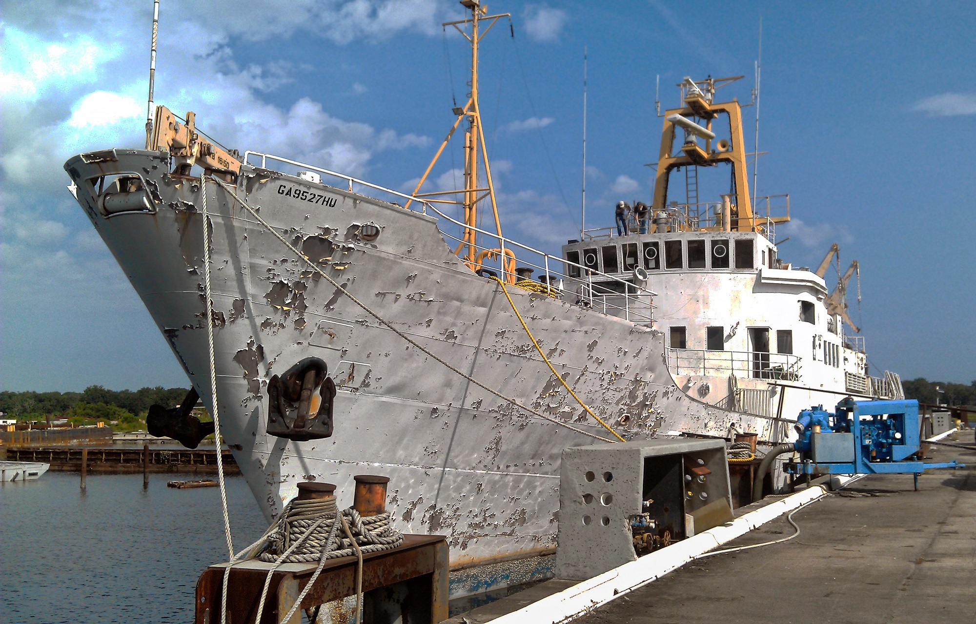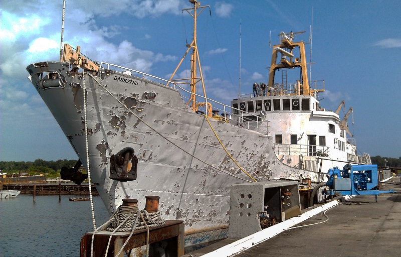 The former CFAV ENDEAVOUR at the breakers yard. She was broken-up by the Ballinger Yard which is owned by Moody & Sons of Jacksonville, FL Photographer: Kirk Nielsen Courtesy of Jerry Proc Click on the above photo to view a larger image