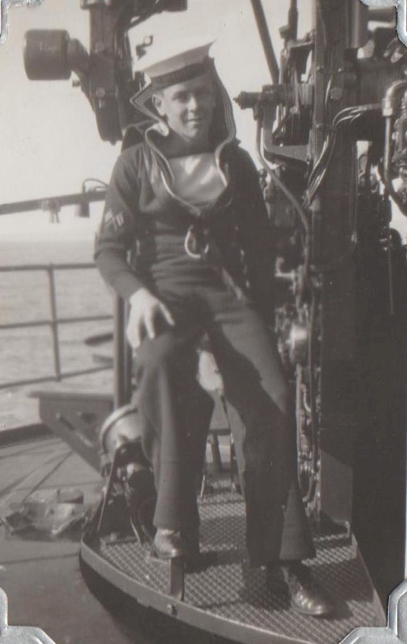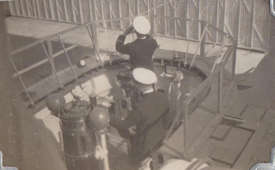 (1) Sailors on a gun sponsons on HMS Courageous (2) Officers on the bridge of HMS Courageous (3) Thomas Carson sitting at one of the guns on HMS Courageous