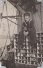(1) Sunday Divisions on the flight deck of HMS Courageous (2) Thomas Carson on the flag deck of HMS Courageous (3) Thomas Carson (right) with "Old Mac" on HMS Courageous (4) Battleship HMS Royal Oak (5) Thomas Carson in a dgnaisa - HMS Courageous n the background (6) Malta locals selling canaries