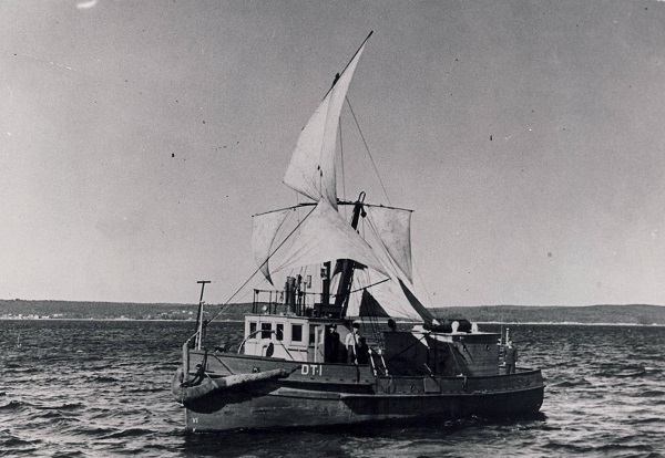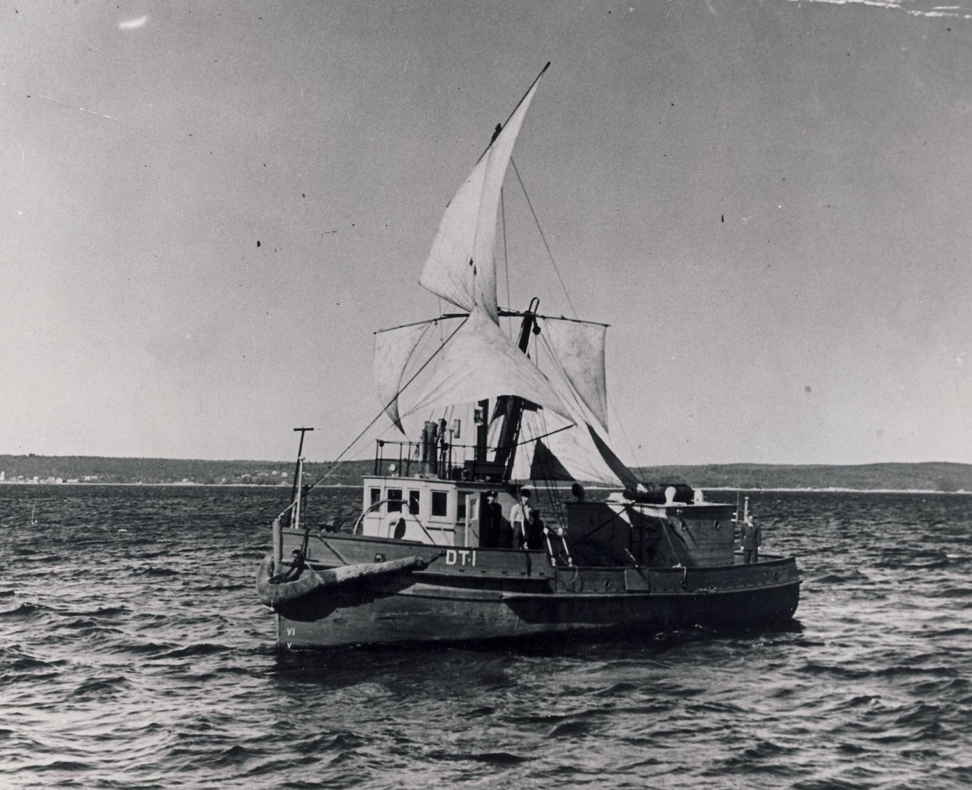 DT1 was a diving tender that operated out of Halifax. She first appears in the Navy lists for Jan 1948. She was assigned to the Naval Research Establishment (NRE) Halifax for use in trials for the development of the Canadian Variable Depth Sonar (VDS).
