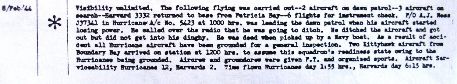 (EHK001) EHKOLI at Sooke, BC, March 2015 // Courtesy of / © Chris Cole 2015 (EHK002) Accident report on the loss of Hurricane 5423 and the death of her pilot A.J. Ness J37341 on 08 Feb 1944 // Pat Bay Museum and Archives // Courtesy of / Researched by Anne Gafiuk (EHK003) Skpr Cox'n Bjarne Arnet's report on EHKOLI FY12's response to the downing of Hurricane 5423 on 08 Feb 1944 // Library and Archives of Canada // Courtesy of / Researched by Anne Gafiuk (EHK004) Ehkoli at the Shelter Island Marina - Jun 2022 // Photographer / Courtesy of / © Roger Bryenton 2022