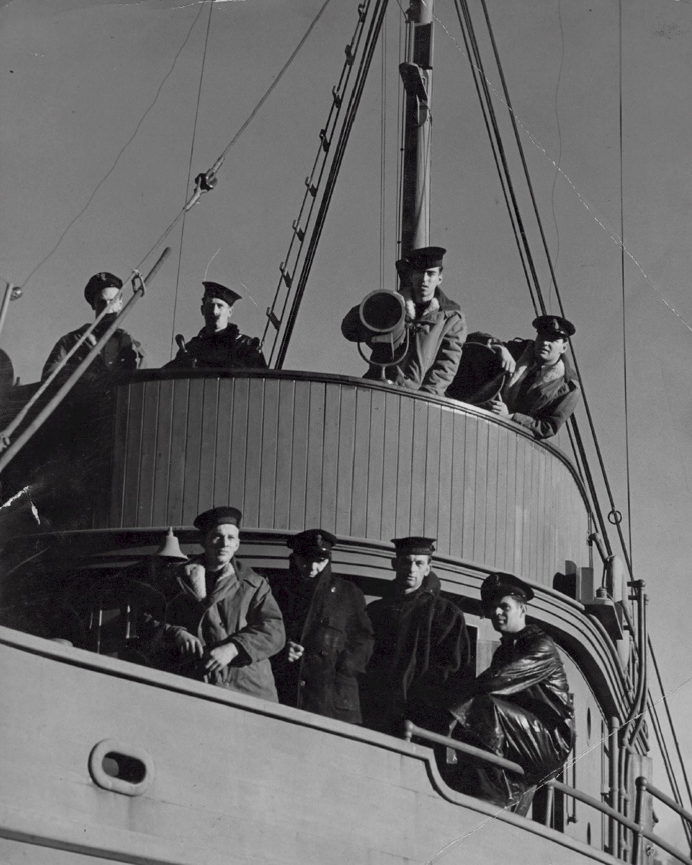 Scotty Neish on bridge, 1st on right,
