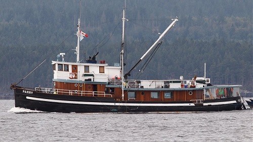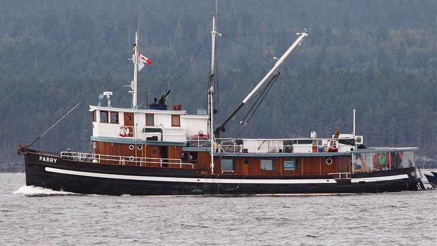 Built by Armstong, Victoria, BC, TALAPUS was one of 6 vessels built for the Fisherman's Reserve as the Nenamook class patrol craft, to replace some of the less suitable vessels. Using blueprints from a redesign of large seiners, the interiors were adjusted to suit a crew of 18. Built for the Fisherman's Reserve, they were equipped for ASW and were armed with depth charges, ASDIC and small arms. In 1947 she was transferred to the Dept of Mines & resources for hydrographic survey work. She was later sold to Cloverleaf Shipping. At some point in 1947 she was renamed Parry. The Parry spent some years working for the Hydrographic Service, charting the B.C. coast. She was eventually converted to a charter boat, and now does fishing charters on the central and north BC coast for Westwind Tugboat Adventures. A rare but magnificent sighting on Malaspina Strait