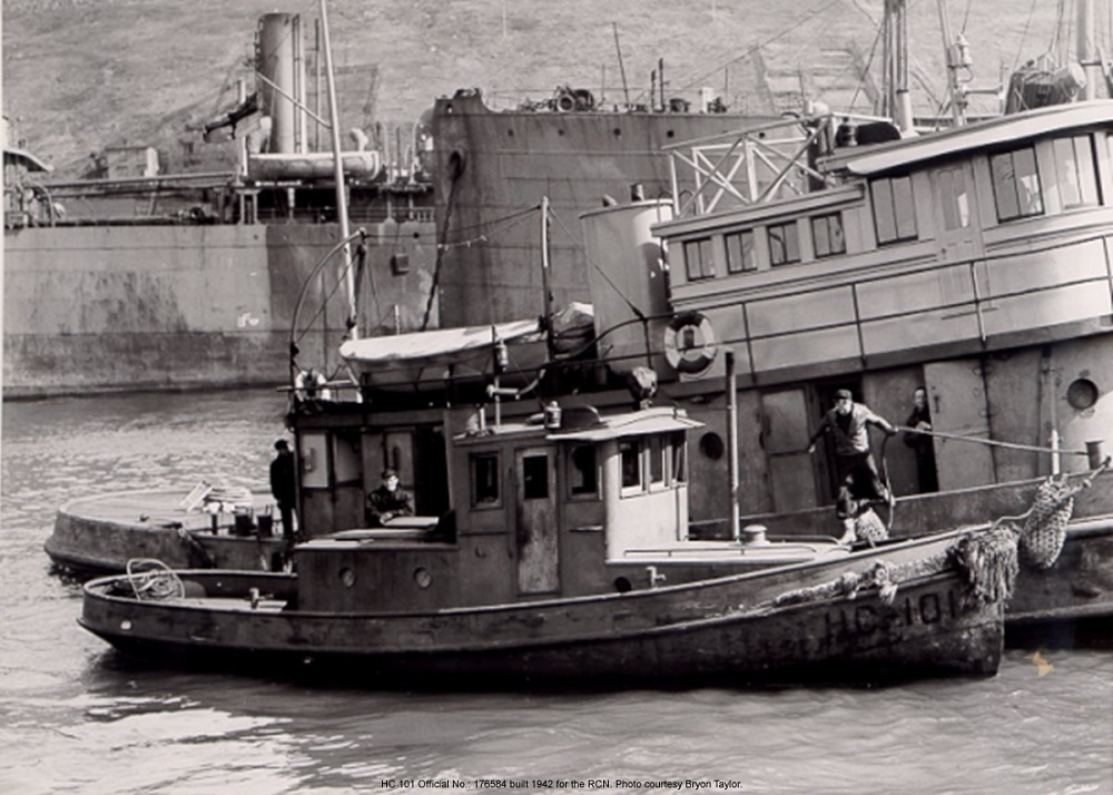 Built in Owen Sound, ON, for the RCN in 1942 to replace the condemned vessel TANTRAMAR, she operated in Saint John's, Newfoundland as a Boom Attendant Vessel. In 1946 she was sold to Anticosti Shipping Co., Montreal, QC and renamed CONSOL III. In 1947 she was sold to Straits Towing & Salvage Co., Ltd., Victoria, BC and renamed HARVAN. In 1948 she sank (total loss). (Source: The Nauticapedia)