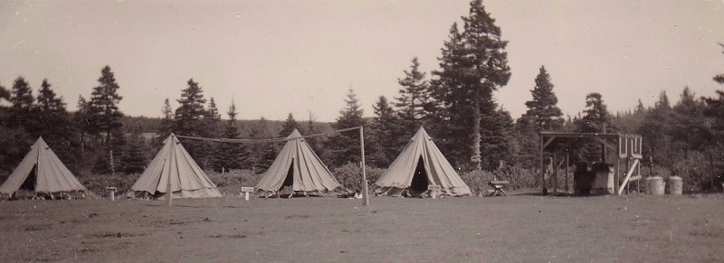 Historical note on the camp after the Second World War: "But of far greater importance was their sponsorship of a summer camp for boys of St. John's. The club purchased an ideal site near Donovan's on the Topsail road. This had been used as a rest centre by the navy during the war years and some buildings were left standing on the property. Two groups, each consisting of 30 boys, who were selected by us, were permitted to spend two weeks each in camp absolutely at the expense of the Kinsmen, who not only provided the food and the cooking staff, but also gave clothing to those who needed it. ...... The camp was most successful and was not only enjoyed by the boys, but was also beneficial to them, as in all cases increases in weight were shown"