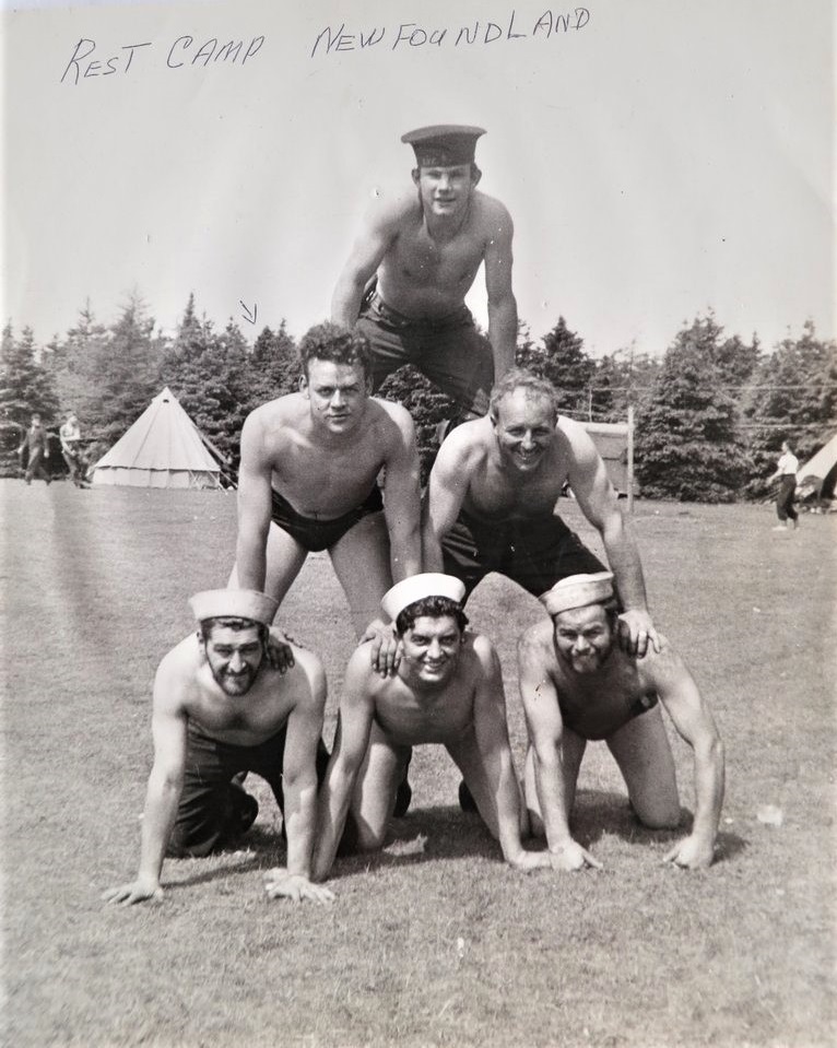 (REC005) Errol Cross at HMC NAVAL CAMP, a rest camp near St. John's, Newfoundland (REC006) Errol Cross, (middle row, left) at HMS NVAL CAMP, a rest camp near St. John's, Newfoundland From the Collection of Errol Cross, Able Seaman, RCNVR Courtesy of Penny Duncan