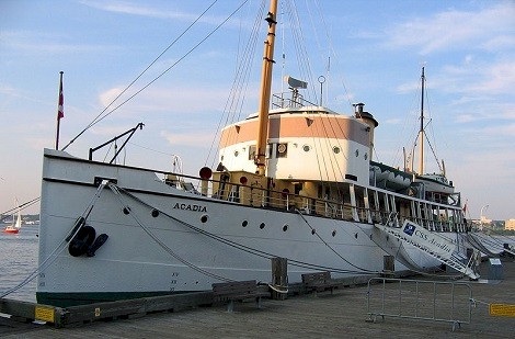 Acadia was launched in 1913 at Newcastle-upon-Tyne, England at the yards of Swan, Hunter and Wigham Richardson Ltd. She was the first vessel specifically designed and built to survey Canada's northern waters, and her career took her from the dangerous, ice-infested waters of Hudson's Bay to Nova Scotia's South Shore. In her early years, she was responsible for pioneering hydrographic research in Canada's Arctic waters. At the end of her career, she was used to chart the coast of Newfoundland after it joined Confederation in 1949, creating entirely new charts and updating some that were nearly a century old. Acadia also holds the distinction of being the only surviving ship to have served the Royal Canadian Navy during both world wars. She served as a patrol and escort vessel from 1916 to 1919. She received minor damage in the Halifax Explosion in 1917 while acting as a guard ship in Bedford Basin, making her the only vessel still afloat today to have survived the Halifax Explosion. Acadia was re-commissioned as a warship in 1939 serving first as a patrol vessel and later as a training ship until the war's end in 1945. (Source: Maritime Museum of NS website)