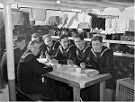 (AGZ005) Unidentified ratings eating a meal aboard HMCS AGASSIZ, Esquimalt 1941  //  Source: Canada. Dept. of National Defence / Library and Archives Canada / PA-139897
