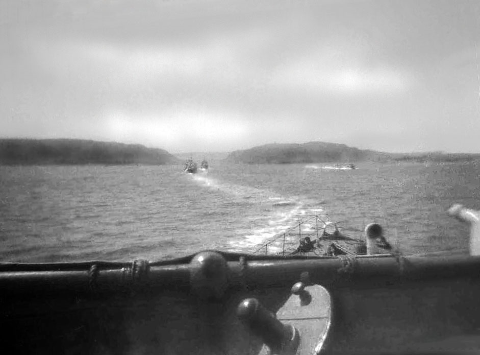 (TM08) Corvettes entering St. John's, NFLD.  HMCS AGASSIZ in the foreground