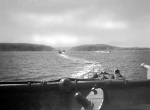 (AGZ010) HMCS AGASSIZ K129 riding high following astern of HMCS ORILLIA K119  //  From the collection of Lt W. Ralph Moxley, RCNVR  //  Courtesy of Robert Moxley