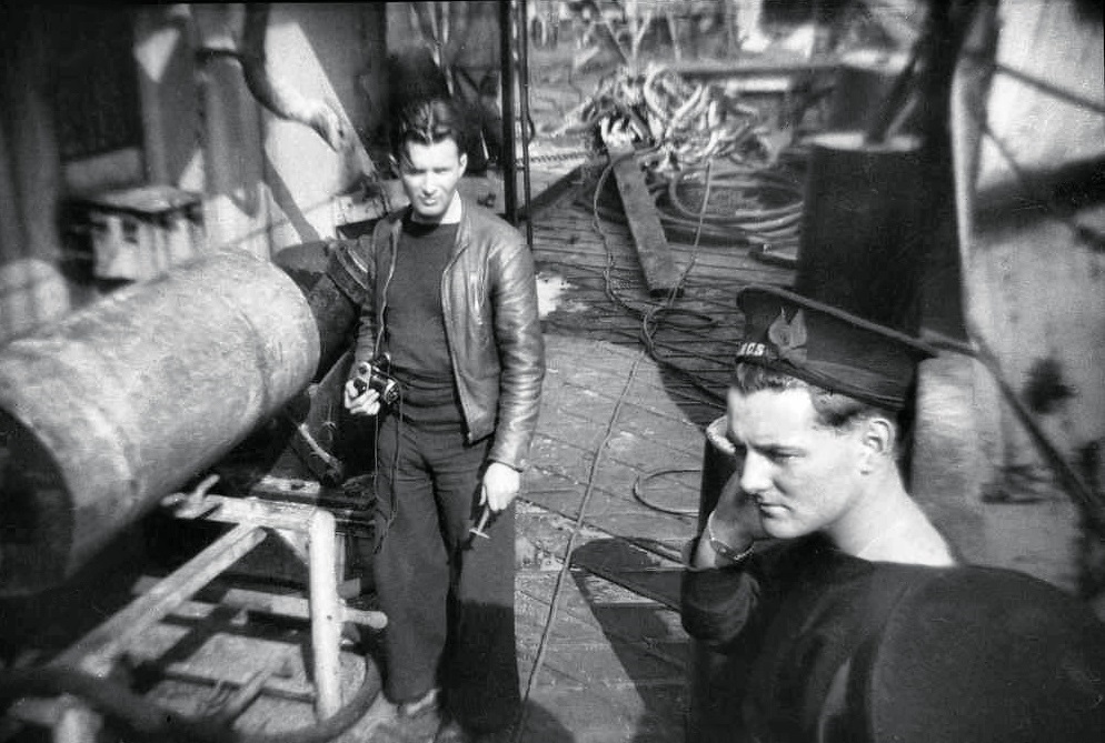 (TM09) Frank McAleese (right) and an unknown sailor on HMCS AGASSIZ K129