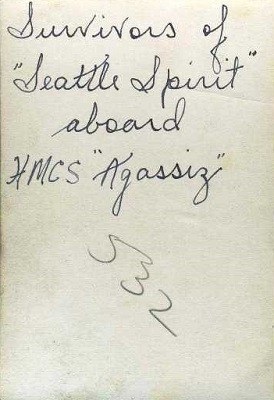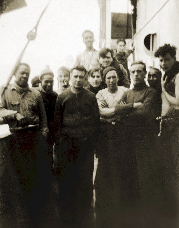 (TM11) Survivors of the SS Seattle Spirit, torpedoed and sunk on 18 Jun 1942. Part of Convoy ON.102 (Liverpool to Halifax 09-25 Jun 1942). Survivors picked up by HMCS AGASSIZ. Four crew from the Seattle Spirit were lost  //  Click here to view the back of the photo