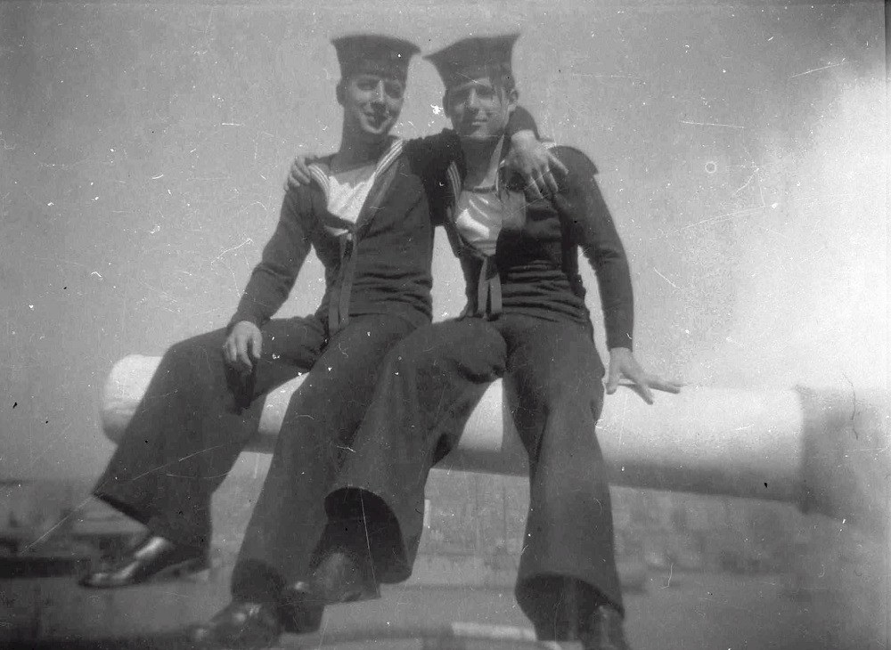 (TM13) Thomas (Tim) Moore (left) and Frank McAleese on the 4-inch gun of HMCS AGASSIZ