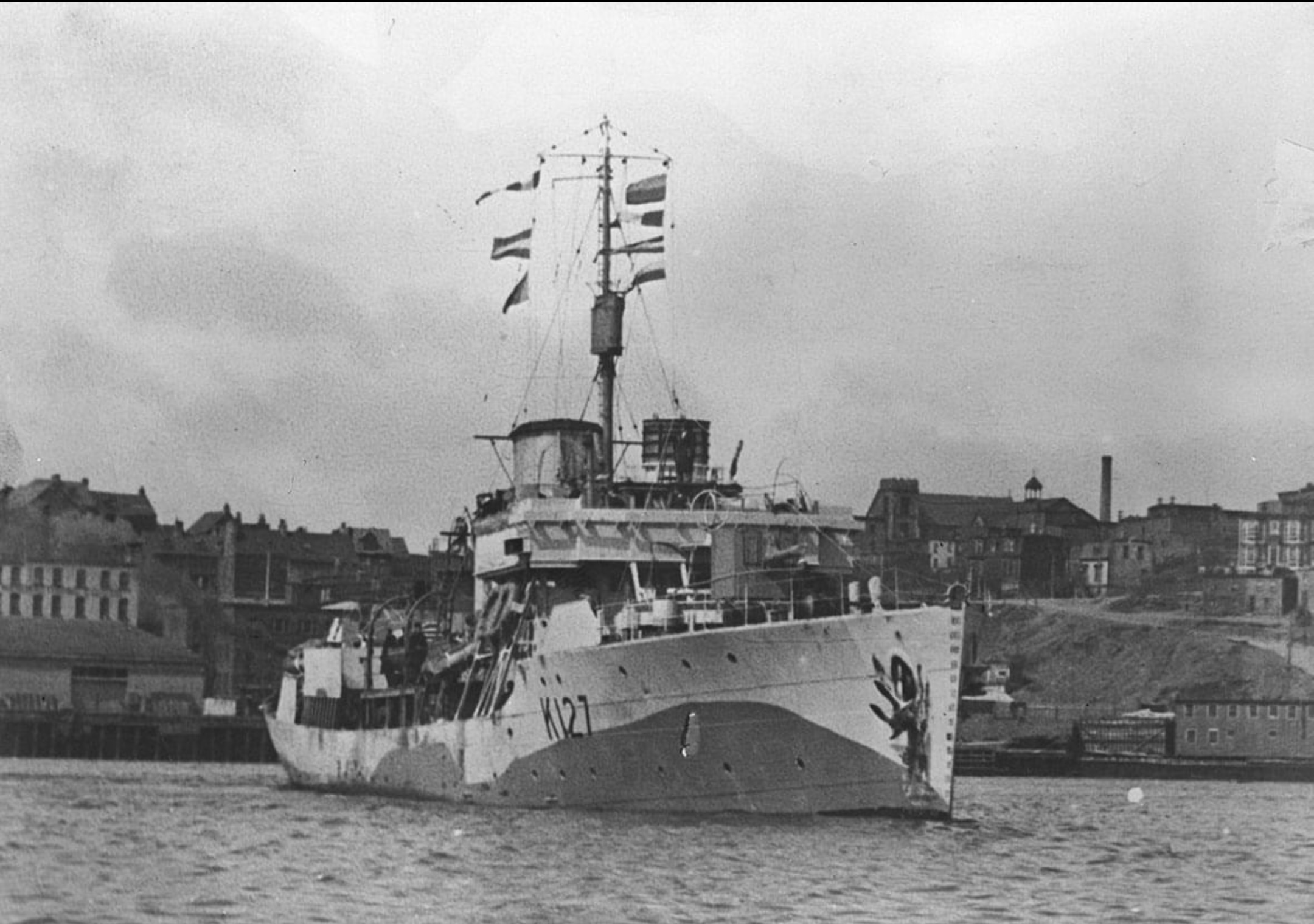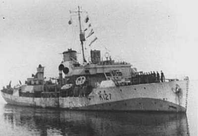 Built by Port Arthur Shipbuilding Co. Ltd., she was commissioned at Montreal on 11 Jul 1941. Algoma arrived at Halifax 18 Jul 1941. She escorted her first convoy to Iceland in Sep 1941, and was thereafter employed as an ocean escort until the end of May 1942. During this period she was involved in two major convoy actions: ONS.67 (Feb 1942) and ONS.92 (May 1942). In Jul 1942, after six weeks' repairs at Liverpool, N.S., she joined WLEF. In Oct 1942, allocated to duties connected with the invasion of North Africa, she left for Britain with convoy SC.107, which lost fifteen ships to U-boat attacks. Algoma served under RN orders the next few months, escorting convoys between Britain and the Mediterranean. In Feb 1943 she was based at Bone, Algeria, but returned to St. John's via the U.K in on 30 Apr 1943 in company with HMCS Calgary K231 as escort for convoy ON.179.  She served briefly with Western Support Force which, based at St. John's, existed only during May 1943, and with WLEF, before joining Quebec Force in Jun 1943. Algoma escorted Quebec-Labrador convoys until mid-November, when she was lent to EG C-4 for one round trip to the U.K. She arrived at Liverpool, N.S., late in Dec 1943 for a major refit, which included extending her fo'c's'le and was not completed until mid-Apr 1944. In May she joined EG C-5 and arrived in Bermuda on 01 June 1944 to work up. Returning to St. John's on 27 Jun 1944, she made three round trips to the U.K. before joining EG 41 (RN), Plymouth Command, in Sep 1944. She was employed on patrol and escort duties in the Channel until the end of May 1945, when she returned to Canada and was paid off 06 Jul 1945 for disposal at Sydney. In 1946 she was sold to the Venezuelan Navy, being renamed Constitucion, and was not discarded until 1962.