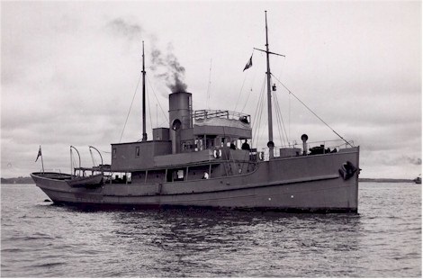 Examination vessel HMCS ANDRÉE DUPRÉ commissioned in Halifax. 285GRT/96nrt 5.0x23.7x12.8ft T3cy 12¾"21½"35"x24" 62nhp 500ihp 11k by Beauchemin and Cie, Sorel Province of Quebec, completed by The Transportation and Shipping Co Ltd, Sorel, Province of Quebec, renamed Naploeon L.; registered 1921 #138460 Napoleon L.; 1926 sold to The Sincennes McNaughton Line Ltd, Montreal, Province of Quebec, renamed ANDRÉE DUPRÉ; 1928 transferred to Sin-Mac Lines Ltd, Montreal, Province of Quebec; 1934 transferred to Sincennes McNaughton Tugs Ltd, Montreal, Province of Quebec; 1935 sold to Manseau Shipyards Ltd, Sorel, Province of Quebec; 1937 sold to Marine Industries Ltd, Montreal, Province of Quebec; 1940-45 WW.II RCN as HMCS ANDRÉE DUPRÉ Examination Vessel; 1945 sold to France renamed Remorqueur 16, of Port Autonome de Bordeaux; renamed 1956 Remorqueur 18. (Source: The Second World War - A day by day account)