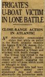 (JR43) Blood Donors Praised By Injured On "Annan". Listed in the article - LCdr C.P. Balfry, RCNR, CO (HMCS ANNAN); Surg-Lt J.D.L. Fitzgerald, RCNVR (HMCS ANNAN); Surg-Lt R.M. MacDonald, RCNVR (HMCS LOCH ACHANALT); Lt David M. Howitt, RCNVR (wounded HMCS ANNAN); Sick Bay Petty Officer W.E. 'Jock' Baxter (HMCS ANNAN) - dated 04 Apr 1945 (JR44) Port Arthur Man on "Annan". Listed in Article - Surg-Lt Robert M. MacDonald, RCNVR (HMCS ANNAN) and Sick Bay Petty Officer W.E. J. Baxter (HMCS ANNAN) of Port Arthur, ON - dated 04 Apr 1945 (JR45) Canadian Frigate Annan Wins Battle With U-Boat - Listed in the article: Awarded DSC: LCdr Charles Patrick Balfry, CO; Lt David M. Howitt, Gunnery Officer. Awarded DSM: CPO Douglas William Barket; LS James Wilson McLeod MacKenzie; AB Daniel George Stone. Awarded: M.I.D.: Lt John Harper Corbet; PO George Arnold Wesbrook; ERA Cyril Libeau - dated 08 Apr 1945 From the collection of John A. Rickard, AB, RCNVR Courtesy of John H. Rickard