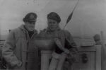 (GGH011) HMCS ANNAN K404, Faroe Islands (GGH012) Four sailors on HMCS ANNAN K404 dressed for foul weather (GGH013) Sailors on the carley floats on HMCS ANNAN K404 // George Hone with the arm over his left shoulder (GGH014) George Hone on HMCS ANNAN K404 (GGH015) George Hone with shipmates