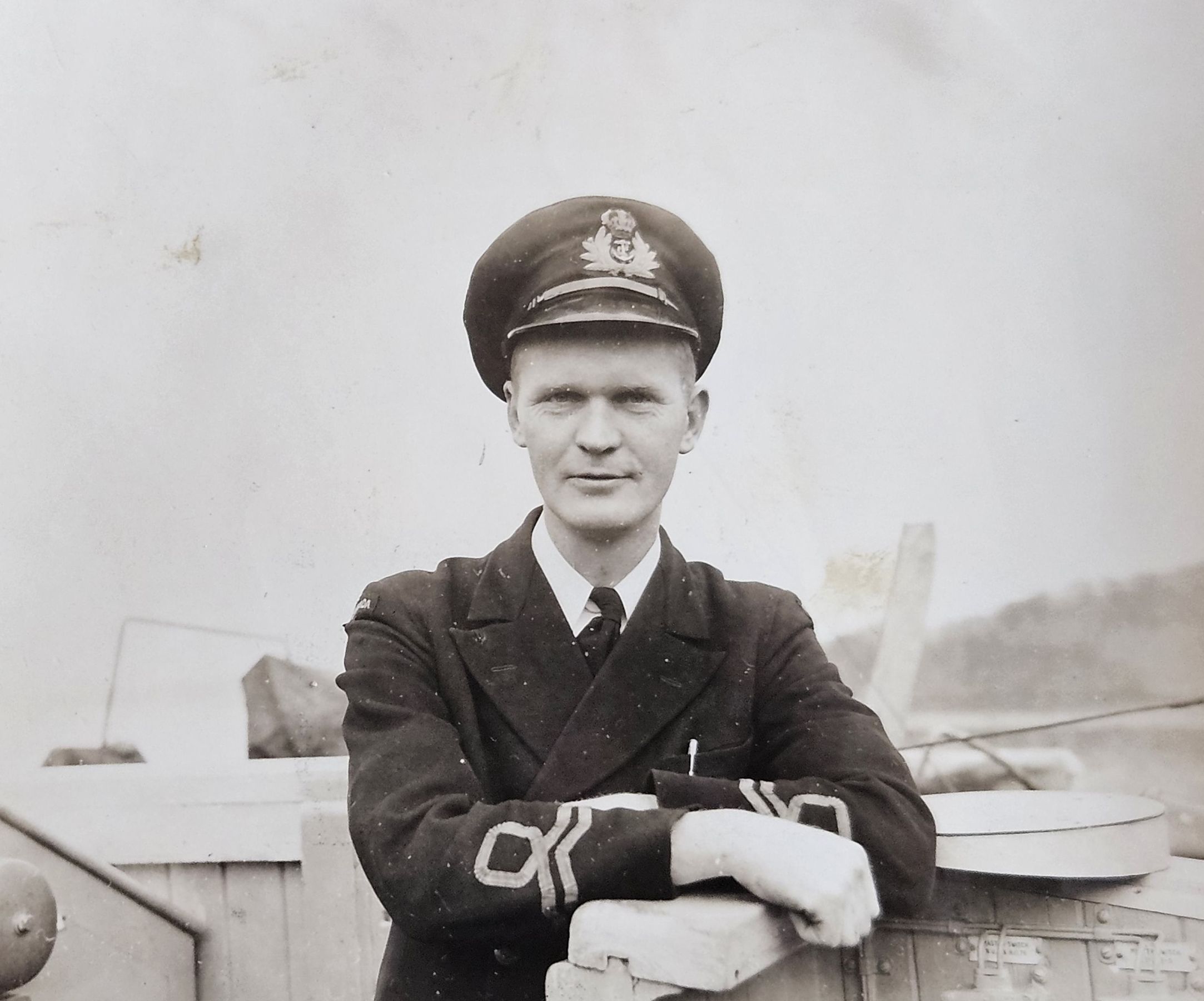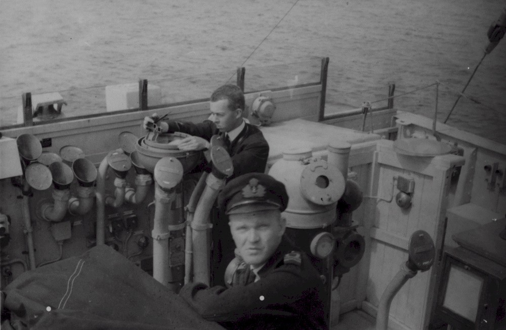 (GGH001) Jacket patch from HMCS ANNAN K404 (GGH002) Newspaper article on the sinking of U-1006 by HMCS ANNAN K404 (GGH003) Officers on the bridge of HMCS ANNAN K404 (GGH004) Officers on the bridge of HMCS ANNAN K404 // "Balcer (left) - officer on deck" (GGH005) Convoy seen from HMCS ANNAN K404