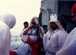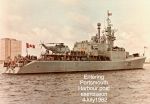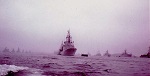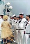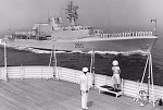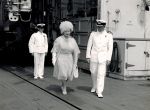 Note on the sail past photo: Prior to final departure as escort for the royal yacht we were stationed on HMY's port quarter. We cranked up to 25 knots. The wind was light and the sea was completely flat but there was a considerable swell causing the ship to pitch heavily, especially at speed. The foc'sle crew was hanging on for dear life.