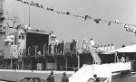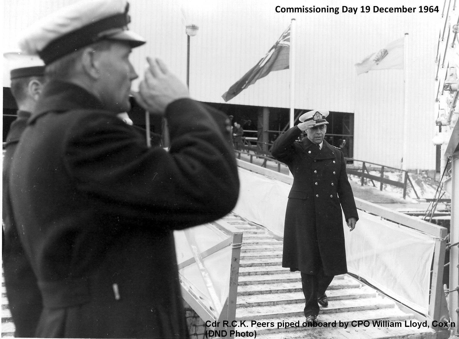 (ANN001) Cdr R.C.K, Peers, first C.O., piped onboard HMCS ANNAPOLIS - Commissioning Day (ANN002) HMCS ANNAPOLIS 265 // RCN photo // Note: this photo was used for the cover of the welcome aboard pamphlet