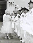 (NP01-NP02) The Queen Mother, accompanied by the CO of HMCS ANNAPOLIS inspected the ship's company - 18 Jul 1967 (NP03) OS Normand Prevost is introduced to the Queen Mother - 18 Jul 1967