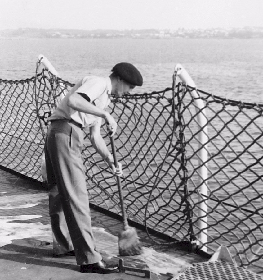 In July, ANNAPOLIS spent two weeks in station 1000 yards astern of HMY Britannia, with HM the Queen Mother on board and with only the occasional glimpse of the royal yacht. Almost all navigation and station keeping was done with radar.