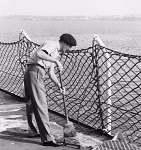 (AF03) Art Fallas (right) receiving his last official tot on HMCS ANNAPOLIS, March 1972 (AF04) LS Sonny Gray on the flight deck of HMCS ANNAPOLIS, circa 1971-1973 (AF05) Lorne Baird and Art Fallas "up the stick" on HMCS ANNAPOLIS (AF06) HMCS ANNAPOLIS tied up outboard of HMS BELFAST, London, England