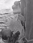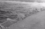 ( HG10-HG12) HMCS ANNAPOLIS covered in ice during Helo Heavy Weather Trials - Jan 1968. In early 1968 ANNAPOLIS was tasked with heavy weather trials for the flight deck. We sailed in January looking for rough weather – and found it! The ship iced up so severely that, on at least one occasion, lower decks were cleared to chip ice – a rather unpleasant experience. I don’t recall what useful work got done under these conditions but suspect it was not very much. (HG13-14) Storm Damage - Jan 1968