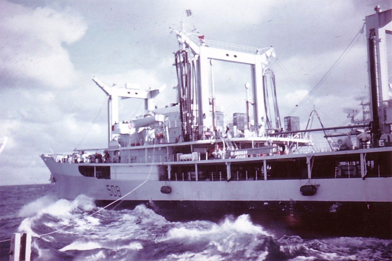 HMCS ANNAPOLIS 265 conducting a RAS with RAS Hr Ms Poolster - NATO 1975 Photo taken from Hr Ms Hr MS Poolster Courtesy of Cor van Dongen, Ttelegrafist Royal Dutch Navy 1972-1979