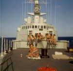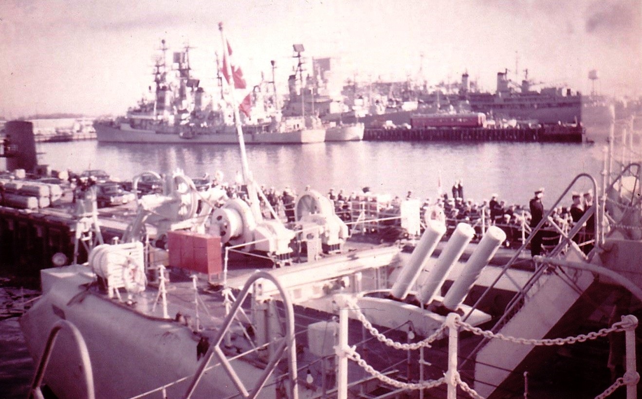 (HG20) ANNAPOLIS Helairdet Sept 1968 including deployment to Europe and the Eastern Arctic for Exercise Silver Tower 16-29 Sept. // (Standing L-R) "Goose" McClellan, Doug Robinson, Herb Harzan, Herb Parsons, Willie Madder, Ron Zboril. (Front) Bob Henderson. (HG21) HMCS PROVIDER - photo taken from HMCS ANNAPOLIS during a RAS - Sep 1968 (HG22) HMCS ANNAPOLIS arriving at Portsmouth, England for a port visit 14-22 Oct 1968 (HG23) HMCS ANNAPOLIS at Norfolk, VA Norfolk, 30 Nov - 4 Dec 1968. The Commissioning of HMCS RAINBOW taking place across the jetty on 02 Dec 1968 (HG24) Port visit to USNA Annapolis, Maryland 5-10 Dec 1968 From the collection of / Courtesy of Heinz Gohlish, Lt (N), RCN / C.A.F.