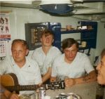 Life below decks in #1 Mess, HMCS ANNAPOLIS, 1971-1973 (AF12) L-R: Thom Scheldrick, Rick Rogers and Art Fallas (AF13) L-R: Wayne Oliver, Mo Alain, Art Fallas, ??, Harry Israel (AF14) L-R: Lorne Baird, Mo Alain, Art Fallas (AF15) L-R: Lorne Baird, Wayne Oliver and Art Fallas (AF16) Mo Alain