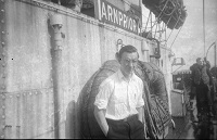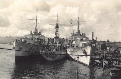The following paragraph from a letter written by A/LCdr, Stuart Thom, dated 29/5/45 held in the National Library and Archives Canada, gives an account of the Arnprior's convoy duty: "It was not our good fortune to participate in any spectacular engagements with the enemy, but during the course of our 14 North Atlantic convoys, not one ship was lost. On no occasion ... did we miss a sailing date because of some defect and we never failed to finish a voyage on schedule". (Researched by / Courtesy of Gary King)