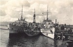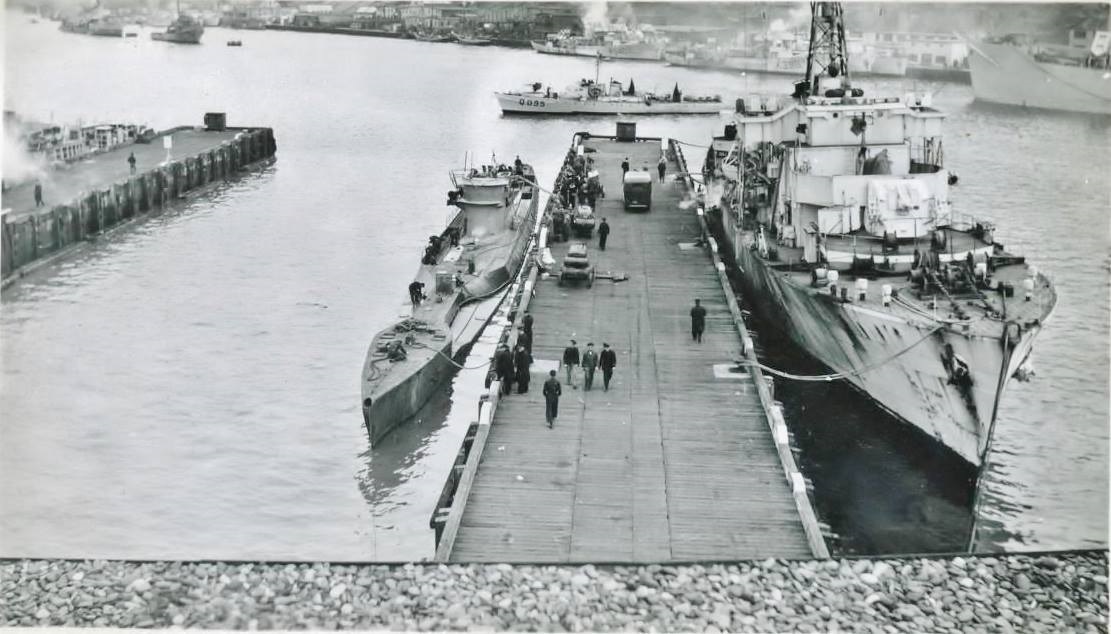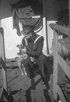 (DK001) Three Castle Class Corvettes alongside - HMCS ARNPRIOR K494 inboard. (believed to be St. John's, Nfld) (DK002) Unidentified sailor on HMCS ARNPRIOR K494 holding ship's mascot (DK003) Unidentified sailor on HMCS ARNPRIOR K494 holding ship's mascot (DK004) Unidentified sailor on HMCS ARNPRIOR K494 (DK005) Unidentified sailor asleep on the deck on HMCS ARNPRIOR K494 (note: you learn to sleep when you get the chance)