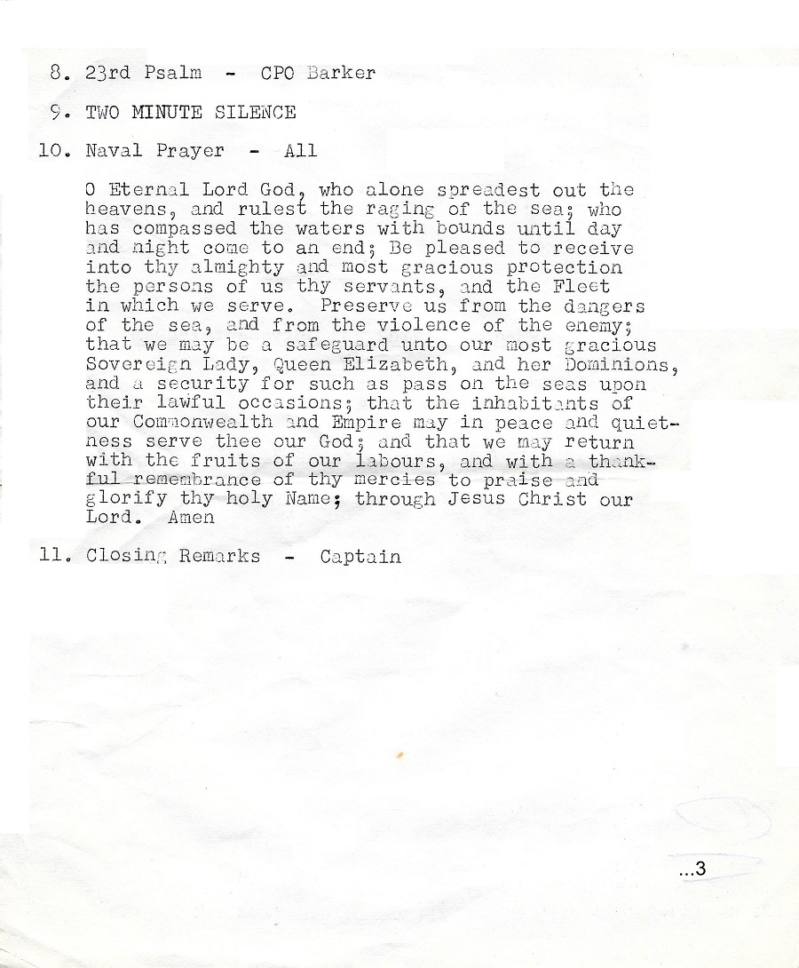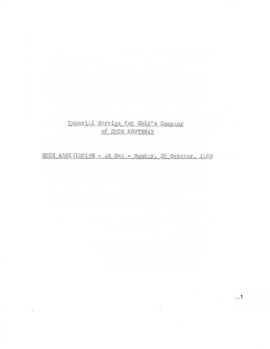 Memorial Service held on HMCS ASSINIBOINE 234 on 26 Oct 1969 for the crew of HMCS Kootenay 258 and those killed and injured during the explosion on her on 23 Oct 1969