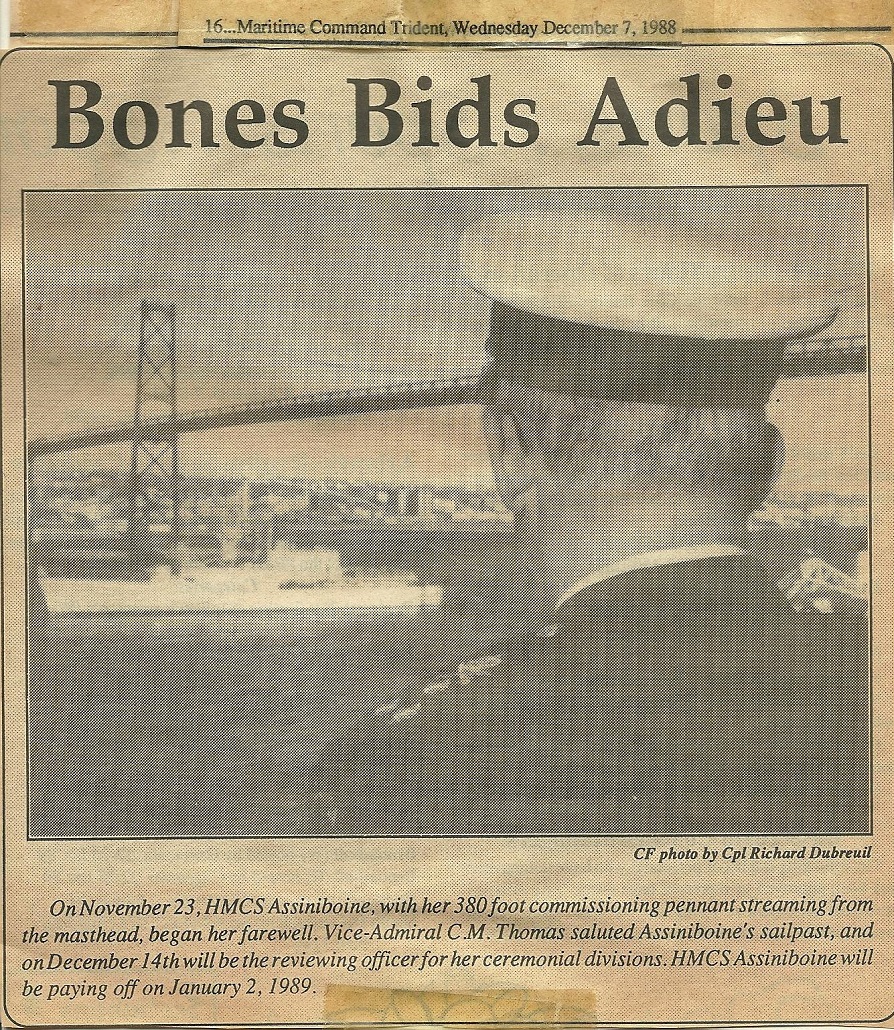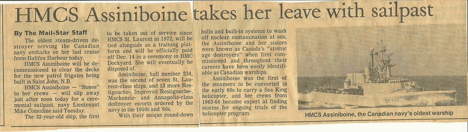 Newspaper article on HMCS ASSINIBOINE's final sail past