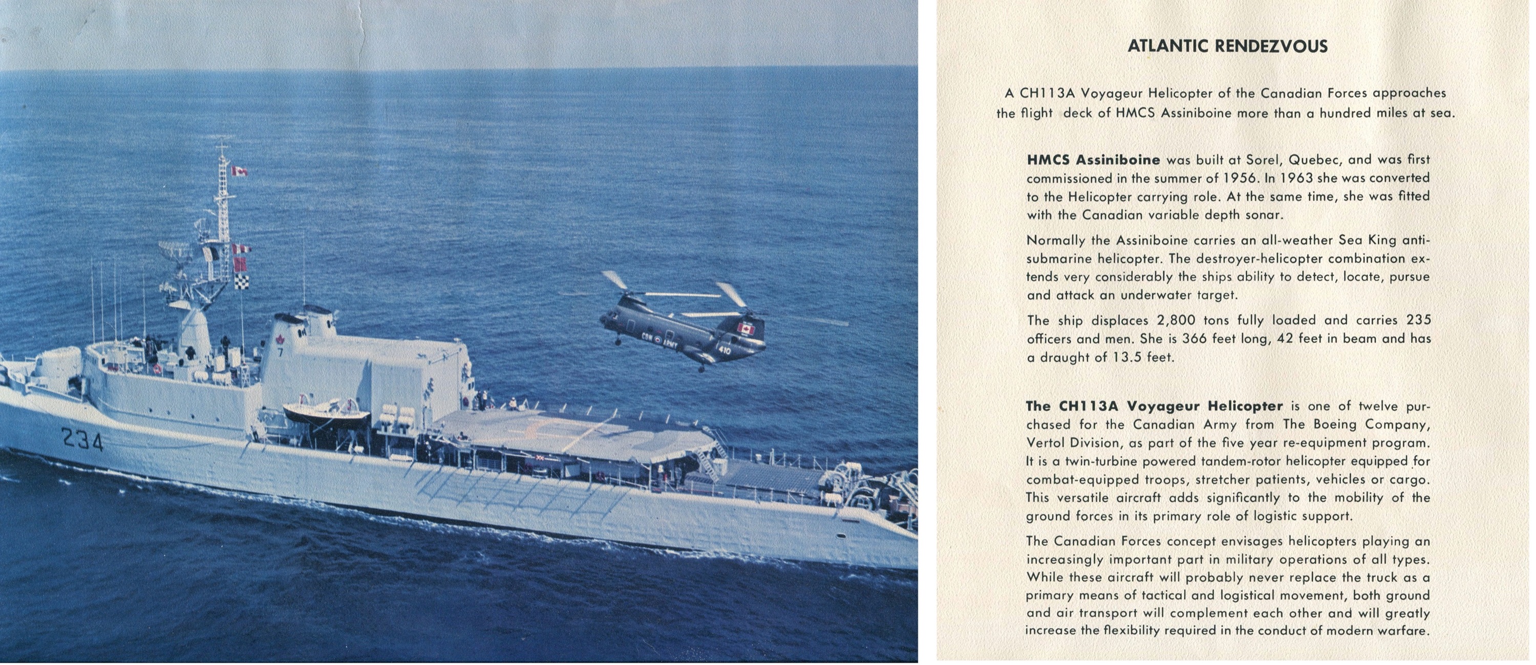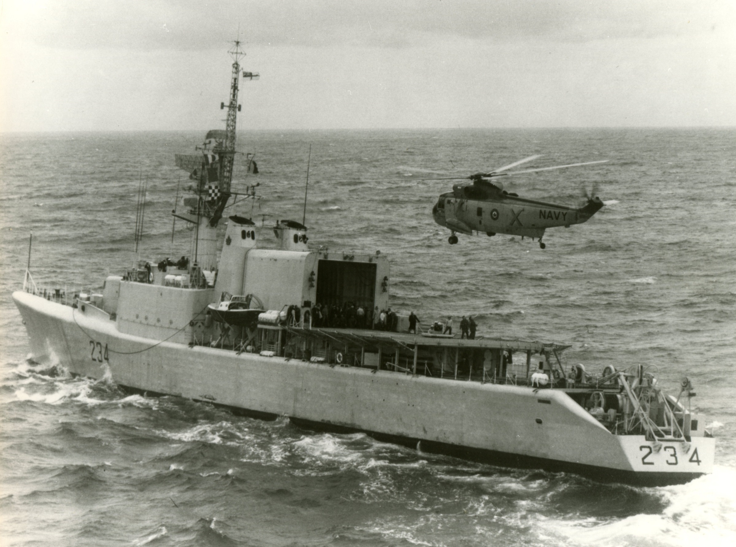 Atlantic rendezvous between a CH113A Voyageur Helicopter and HMCS ASSINIBOINE 234