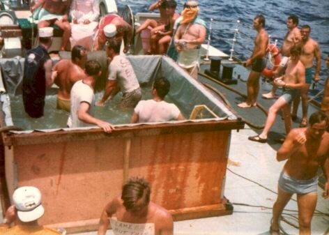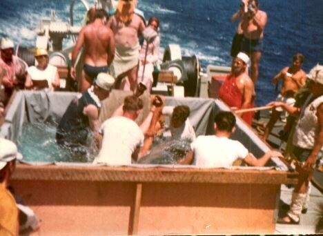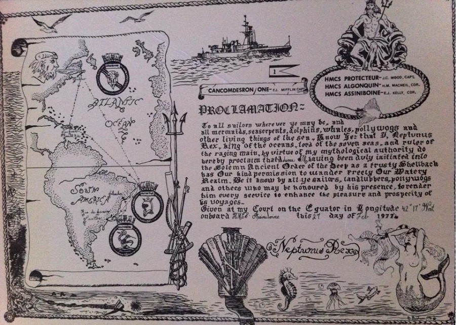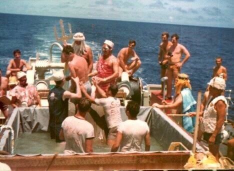 (DB001 - DB005) Crossing the Line Ceremony on HMCS ASSINIBOINE 234 on 27 Feb 1977 during the South American Cruise Courtesy of Danielle Boudreau