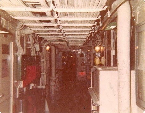 (VP001) HMCS ASSINIBOINE 234 in the slips for refit at Shelburne, Nova Scotia circa 1979 (WP002) HMCS ASSINIBOINE 234 in 1977 - Photo taken from cable deck hatch. (VP003) Burma Road on HMCS ASSINIBOINE 234 looking aft from Engineering office Courtesy of Vincent Pyman