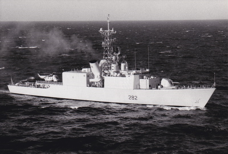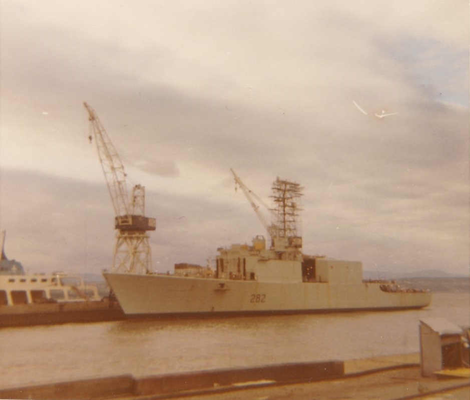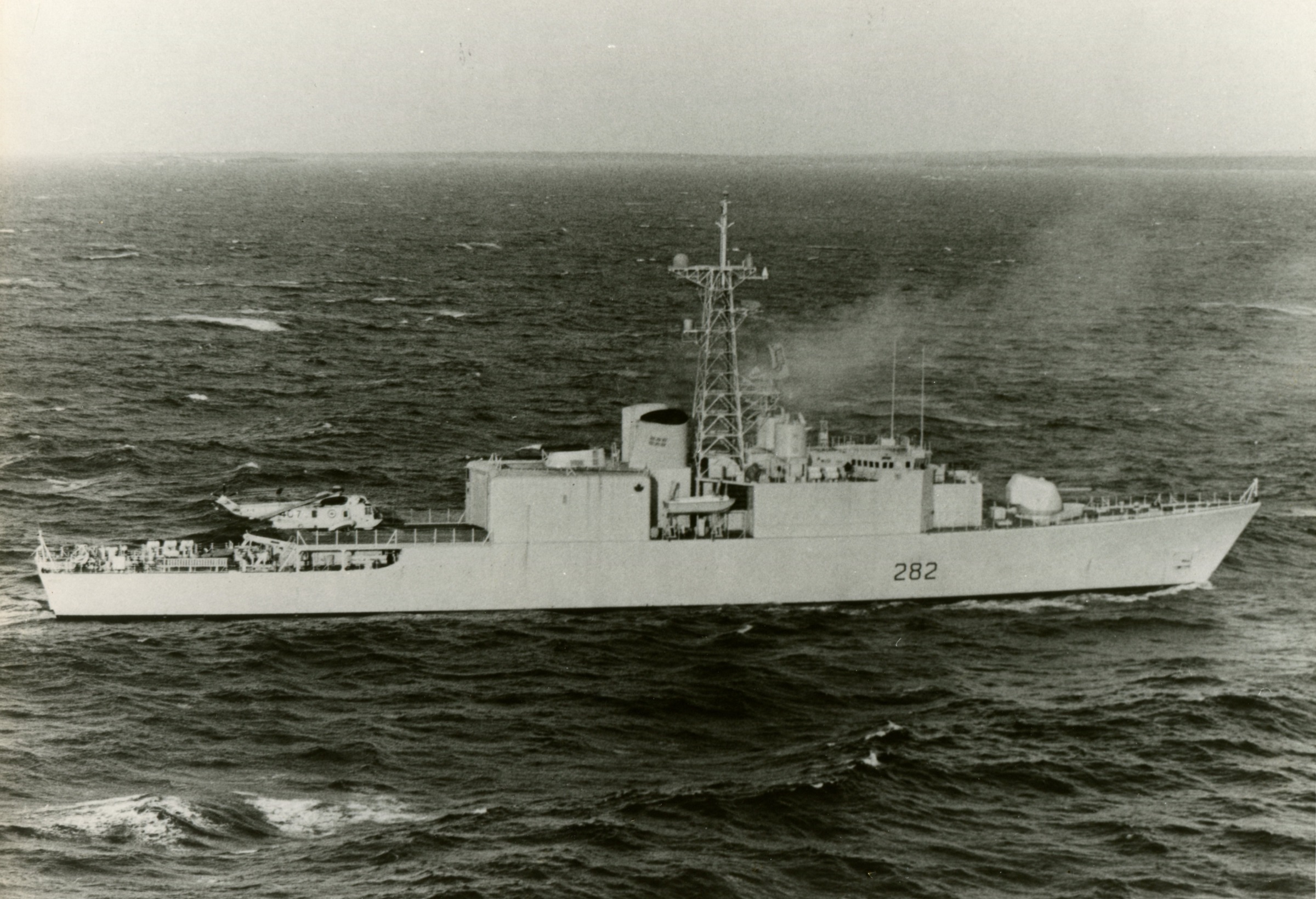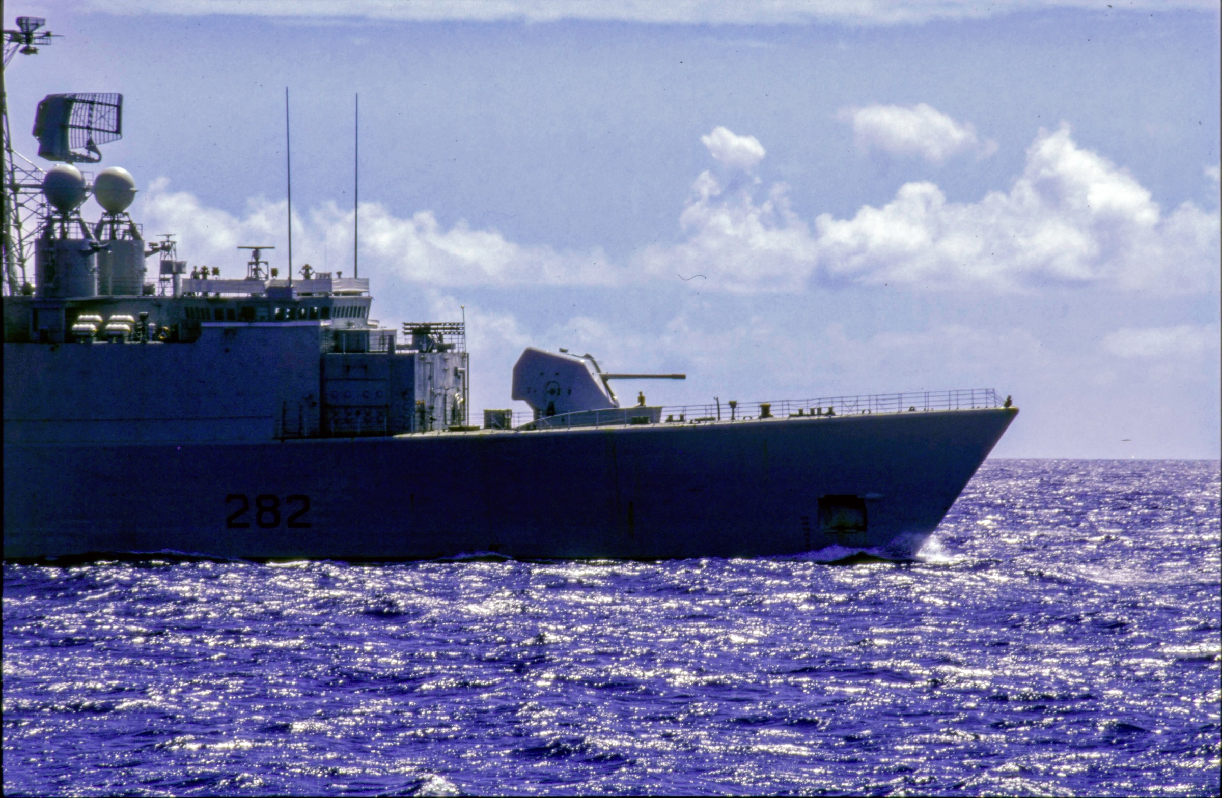 (ATHB006) HMCS ATHABASKAN 282 - DRES Team, FC / WS Dept. circa 1974 // Courtesy of Mike Ellis (ATHB007) HMCS ATHABASKAN 282 - circa 1975 // Courtesy of Nigel Whiteley, LCdr, RCN, ret'd // DND RCN Photo (ATHB008) HMCS ATHABASKAN breaking away from PROVIDER and GATINEAU off the coast of California in spring of 1977. WESTEX 77, first 280 in the Pacific Ocean // Courtesy of Michael Cowen // Photo restoration by Art Turner (ATHN009) HMCS ATHABASKAN with GATINEAU astern off the coast of California in 1977. On the occasion of the first 280 class frigate to sail in the Pacific Ocean as part of WESTEX ‘77. Photo taken from Kiwi frigate HMNZS OTAGO by a much younger (then SLt) Mike Cowen. We really did believe that we were “Sisters of the Space Age”! // Courtesy of Michael Cowen // Photo restoration by Art Turner (ATHB010) HMCS ATHABASKAN 282 departing Gibraltar, 1982 // Photo, with the Rock of Gibraltar in the background, was taken by Brian Lapierre from one of the ship's Sea Kings // Courtesy of Brian Lapierre // © Brian Lapierre 1982