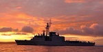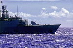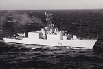 On 24 Aug 1990, ATHABASKAN departed Halifax as one of three ships representing Canada in the Persian Gulf conflict, returning on 07 Apr 1991. Not resting on the laurels of her predecessors, the crew of the ATHABASKAN proved their metal on 18 Feb 1991. On that morning, USS Princeton was patrolling 28 nautical miles off Failaka Island in the Persian Gulf when, at 7:15 a.m. local time, two MN103 Manta bottom-mounted influence mines detonated, one just under the port rudder and the other just forward of the starboard bow. The blasts cracked the superstructure, buckled three lines in the hull, jammed the port rudder, flooded the #3 switchboard room through chilled water pipe cracks, and damaged the starboard propeller shaft. BM3 Ford was seriously injured, along with two other crewmembers who sustained various injuries. At great risk to his ship and crew, the CO of ATHABASKAN navigated her, with the use of the Seaking helicopters to locate mines, though the minefield to deliver damage-control supplies to the severely damaged USS Princeton. ATHABASKAN then guided USS Princeton thorough the minefield until relieved by the minesweeper USS Adroit.