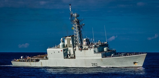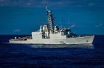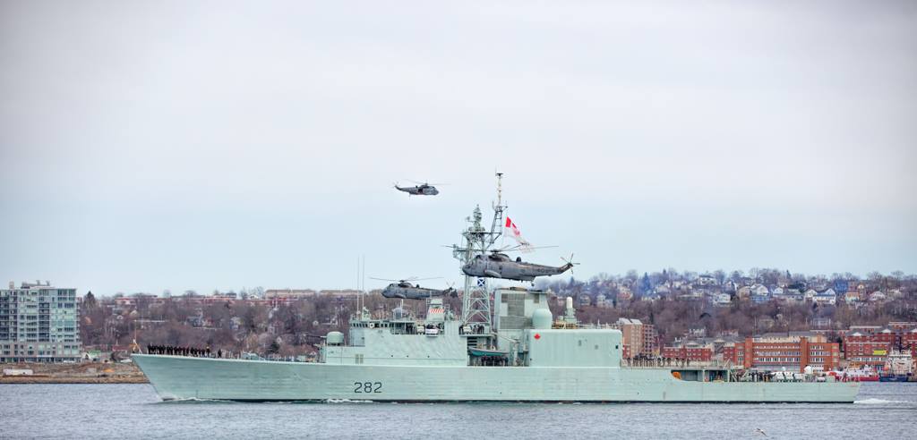 In Oct 1991 she was turned over to MIL, Lauzon, for her TRUMP refit, after which, on 03 Aug 1994, she was provisionally accepted by the Navy. In the fall of 1995 she took part, with Kootenay, in the two-month Exercise UNITAS, along with ships from Argentina, Brazil, Chile, Spain, the U.S. and Uruguay. On 15 Mar 1999 ATHABASKAN departed Halifax for a six month deployment with SNFL, rejoining the Force again at the beginning of 2000. On 03 Aug 2000 she was handed a rather bizarre assignment: to board (via helicopter) the GTS Katie 160 kilometres off Newfoundland. The freighter had a cargo of Canadian military equipment destined from Kosovo to Bécancour, Que., which her chartered had refused to land because of a dispute over payment. She was compelled by the boarding party to deliver her cargo as originally intended. In Sep 2005, with Toronto, Ville de Québec and the CCGS Sir William Alexander, she deployed to Louisiana to assist disaster relief efforts after Hurricane Katrina. On 21 Apr 2006, as flagship of the NATO Standing Maritime Group One (SNMG 1) she was moored at Devonport UK to mark the 80th birthday of HM Queen Elizabeth II. In Jan 2010, with Halifax, she deployed to provide disaster relief following the major earthquake in Haiti. That same year, on 29 Jun 2010, she was the the command ship for HM Queen Elizabeth II for the International Fleet Review marking the Canadian Naval Centennial. Following a refit in St Catherine’s, Ontario, while being towed back to Halifax in Dec 2012, she broke loose from her tow off Cape Breton Island, sustaining some hull damage.