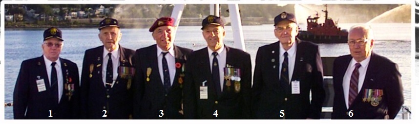 Six survivors of HMCS ATHABASKAN G07 on HMCS ATHABASKAN 282 - circa 2002 (1) Wilf Henrickson (2) Ernie Takalo (4) Herm Sulkers