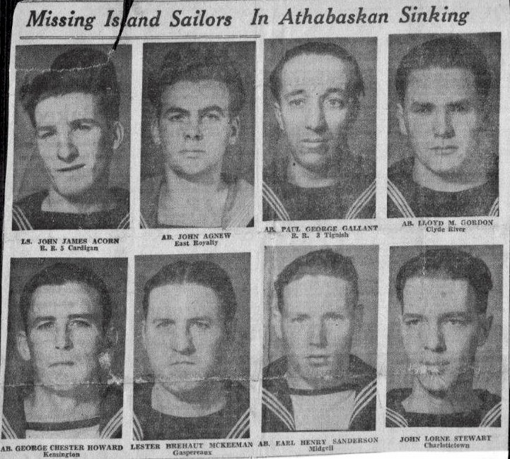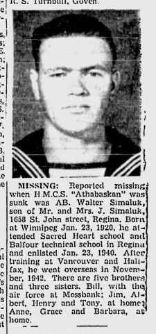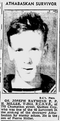 (SP) = Survived the sinking of ATHABASKAN. Captured by the German forces. Became a POW for duration of war (SH) - Survived the sinking of ATHABASKAN. Rescued by HMCS Haida (SC) - Survived the sinking of ATHABASKAN. Rescued by HMCS Haida's cutter