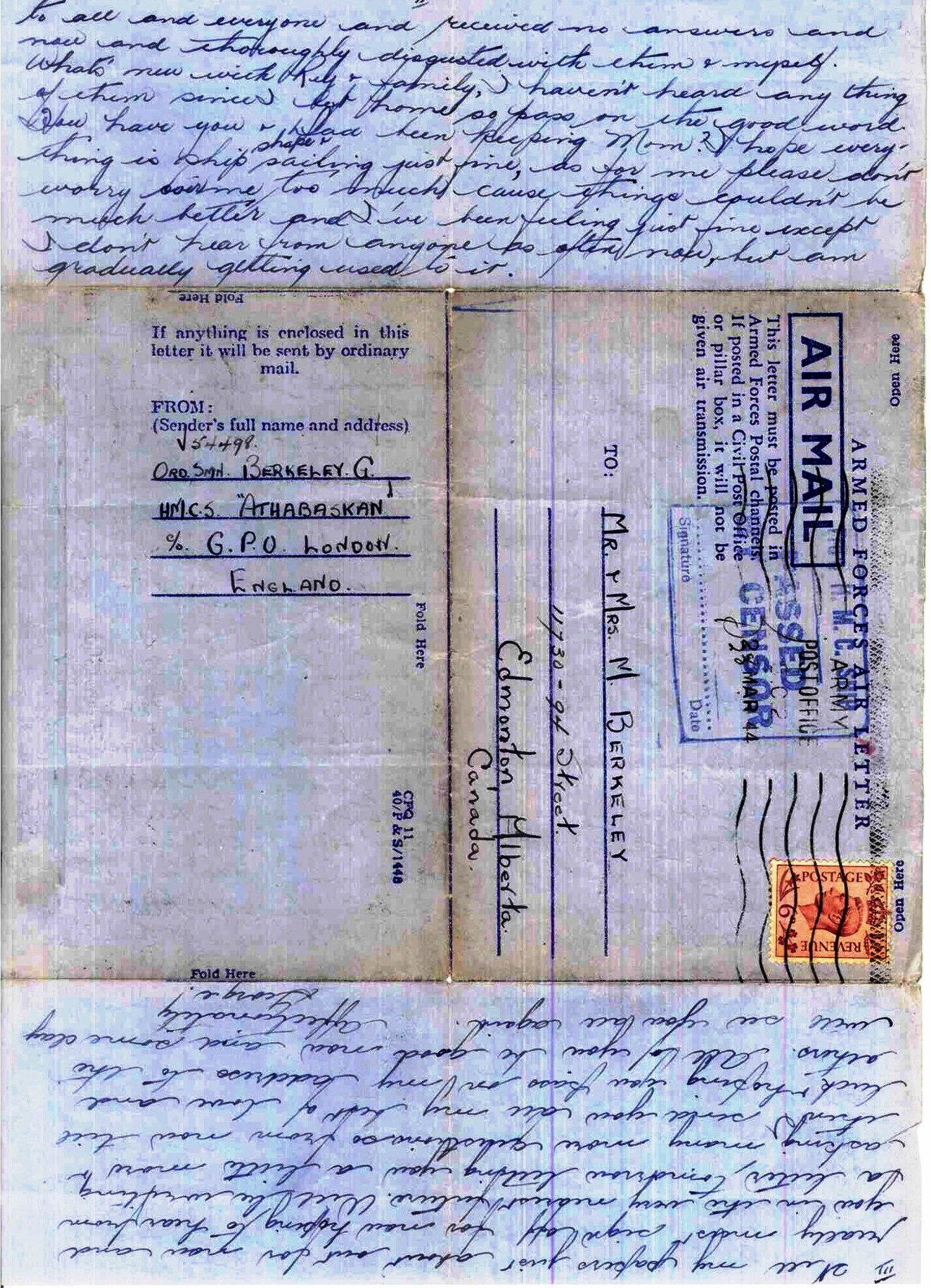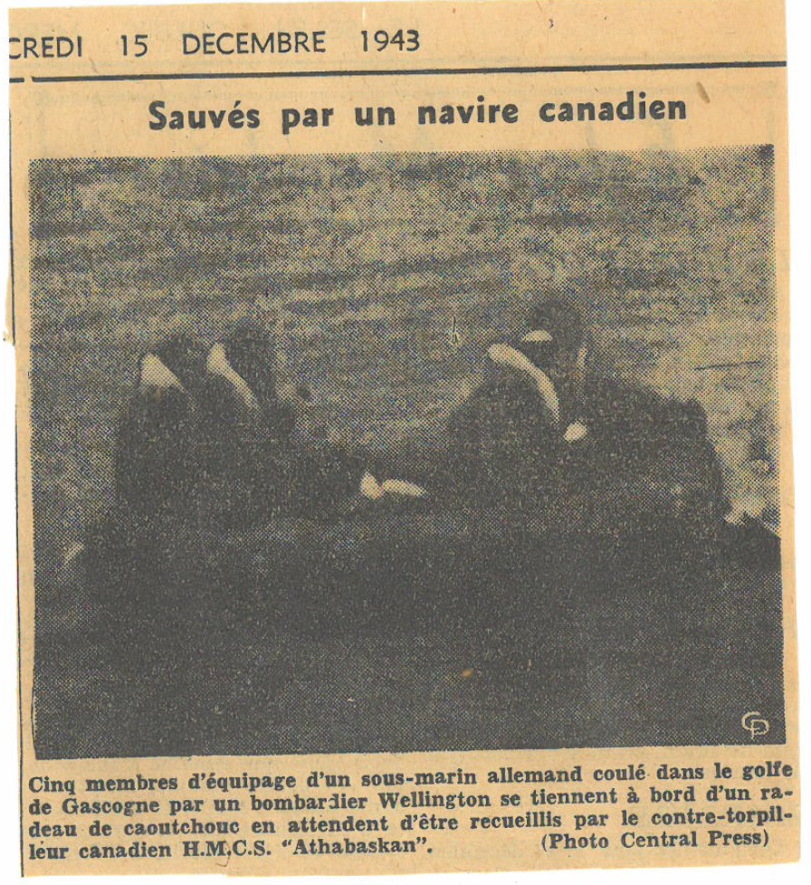 (FM887) HMCS ATHABASKAN G07 rescues survivors from a German U-boat sunk by a Wellington bomber - dated 31 Dec 1943 (FM888) Article on Gunner (T) G.D. Sigston and AB Eric J. Mengoni (FM889) HMCS ATHABASKAN G07 back on duty after being struck by a glider bomb (FM890) Headline - HMCS ATHABASKAN IS SUNK - dated 01 May 1944 (FM891) Article on the loss of HMCS ATHABASKAN G07