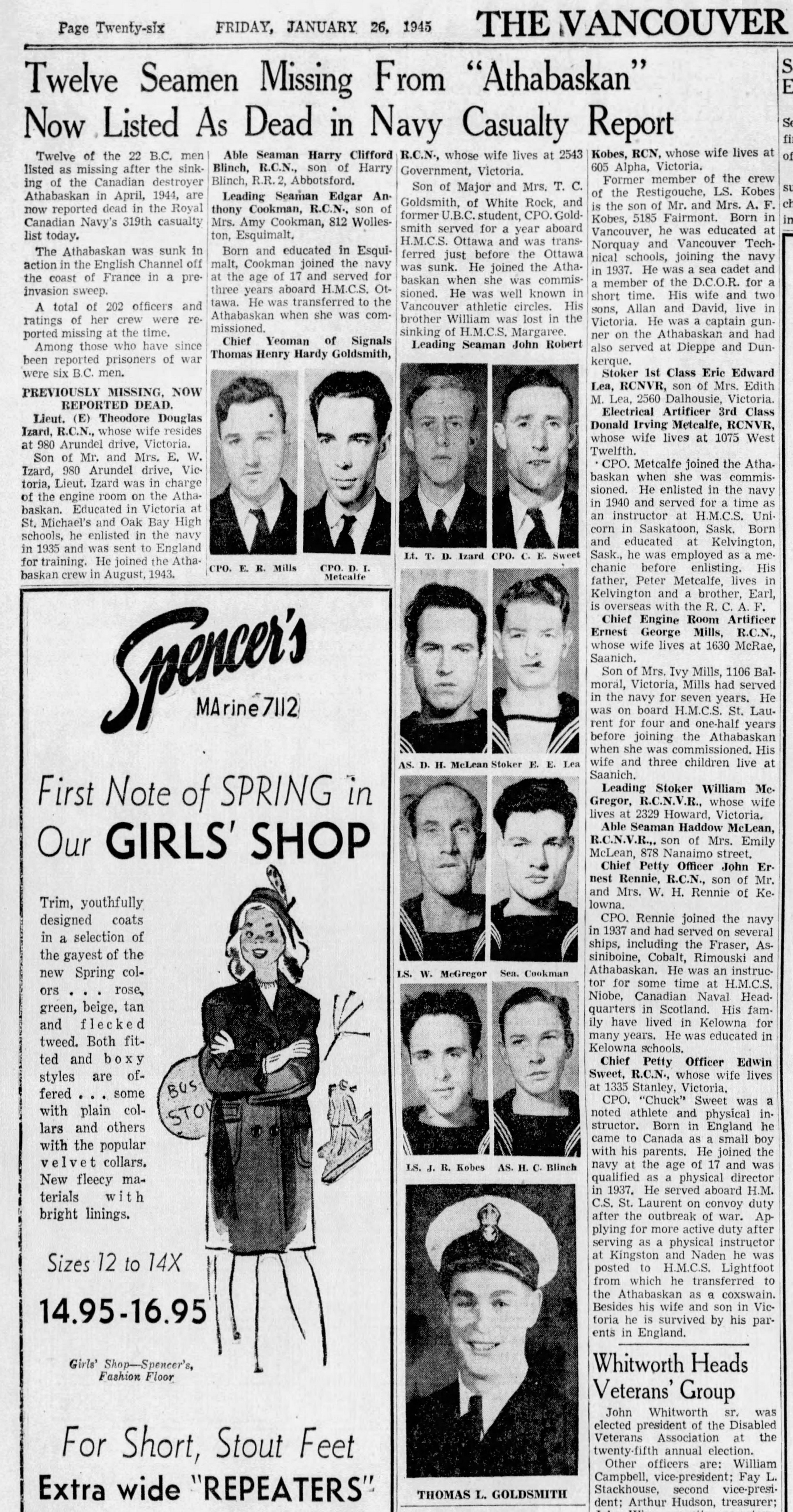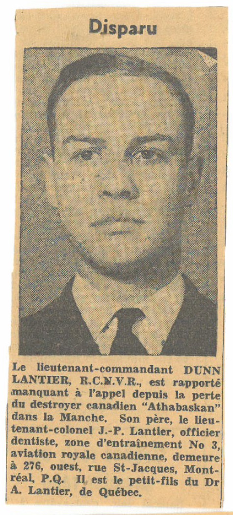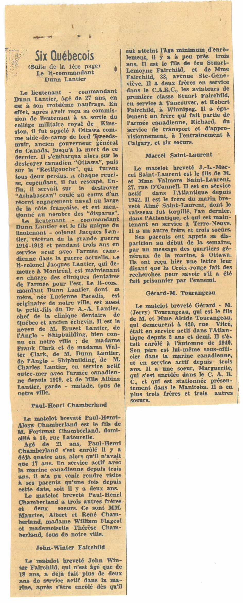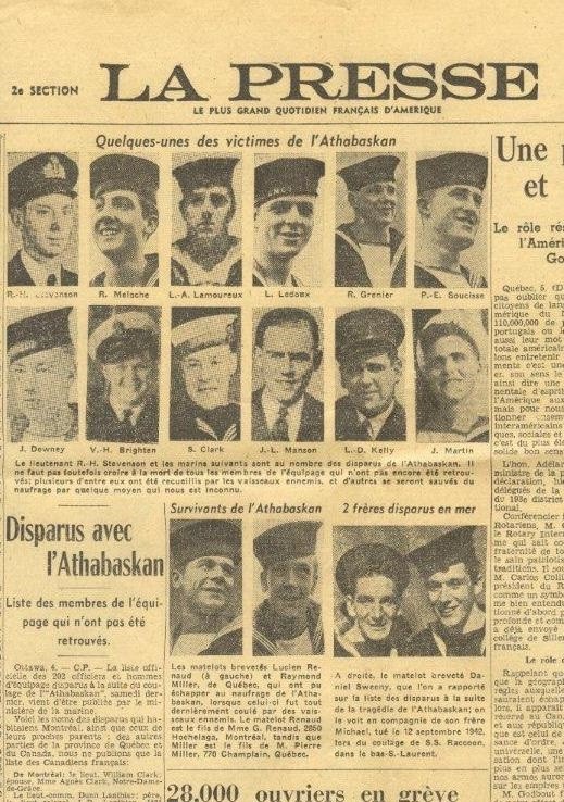 (FM892) A Gallant End - newspaper article on the loss of HMCS ATHABASKAN G07 with crew photo