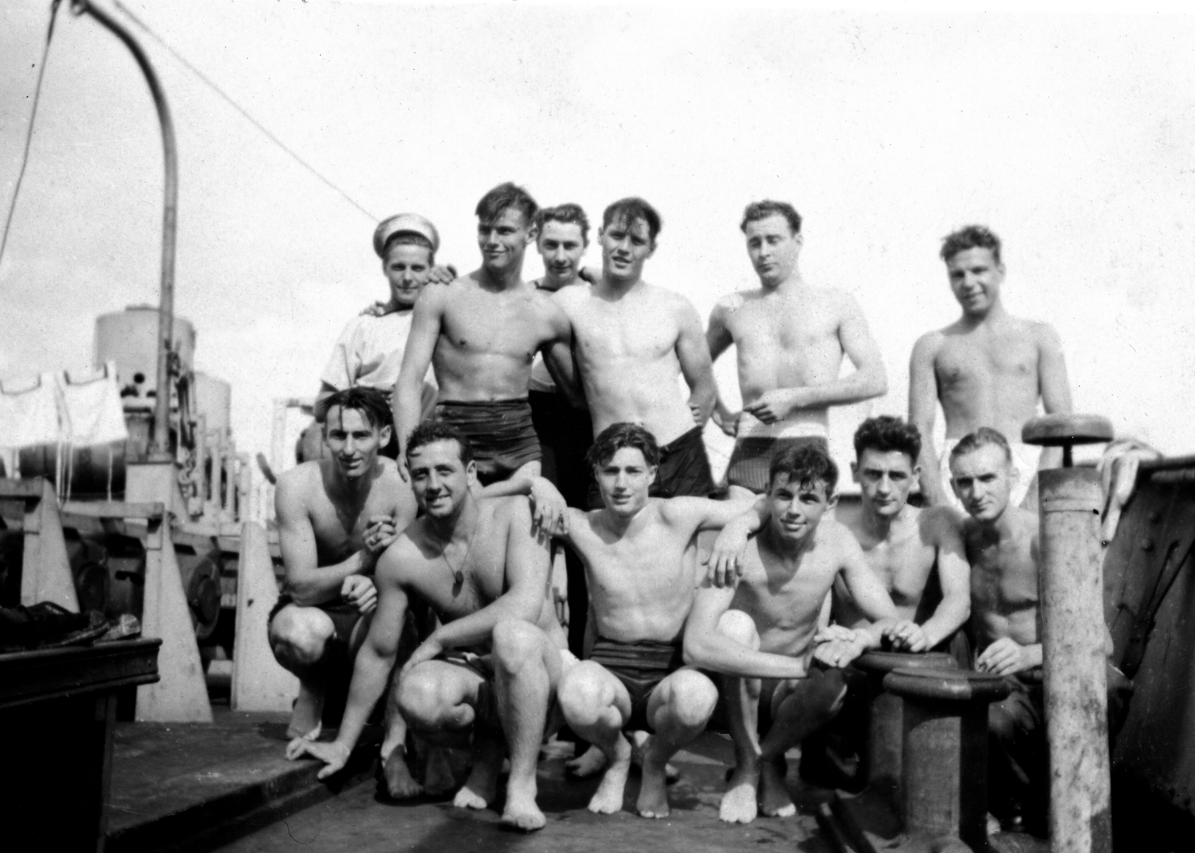 (BDK002) Sailors on an unknown ship - This photo is from the collection of Charles Euwart MacArthur and it is believed this photo was taken on HMCS BADDECK  //  Courtesy of Ben Mucke