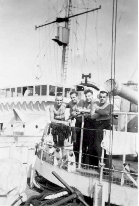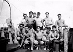(JH04) Sailors on HMCS BADDECK'S gun deck.  Joseph Huard 1st on right.