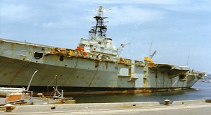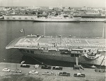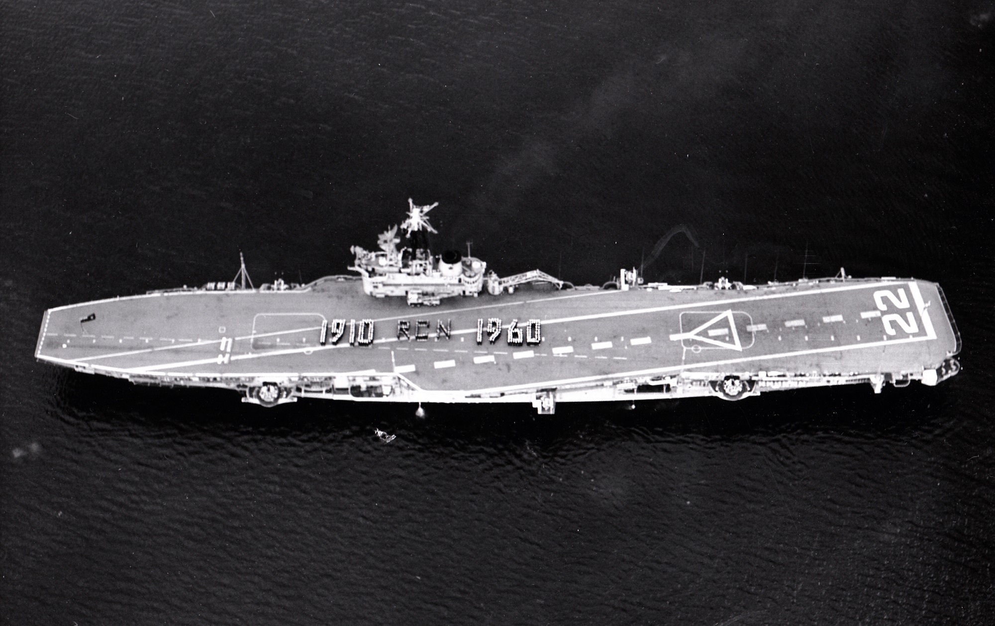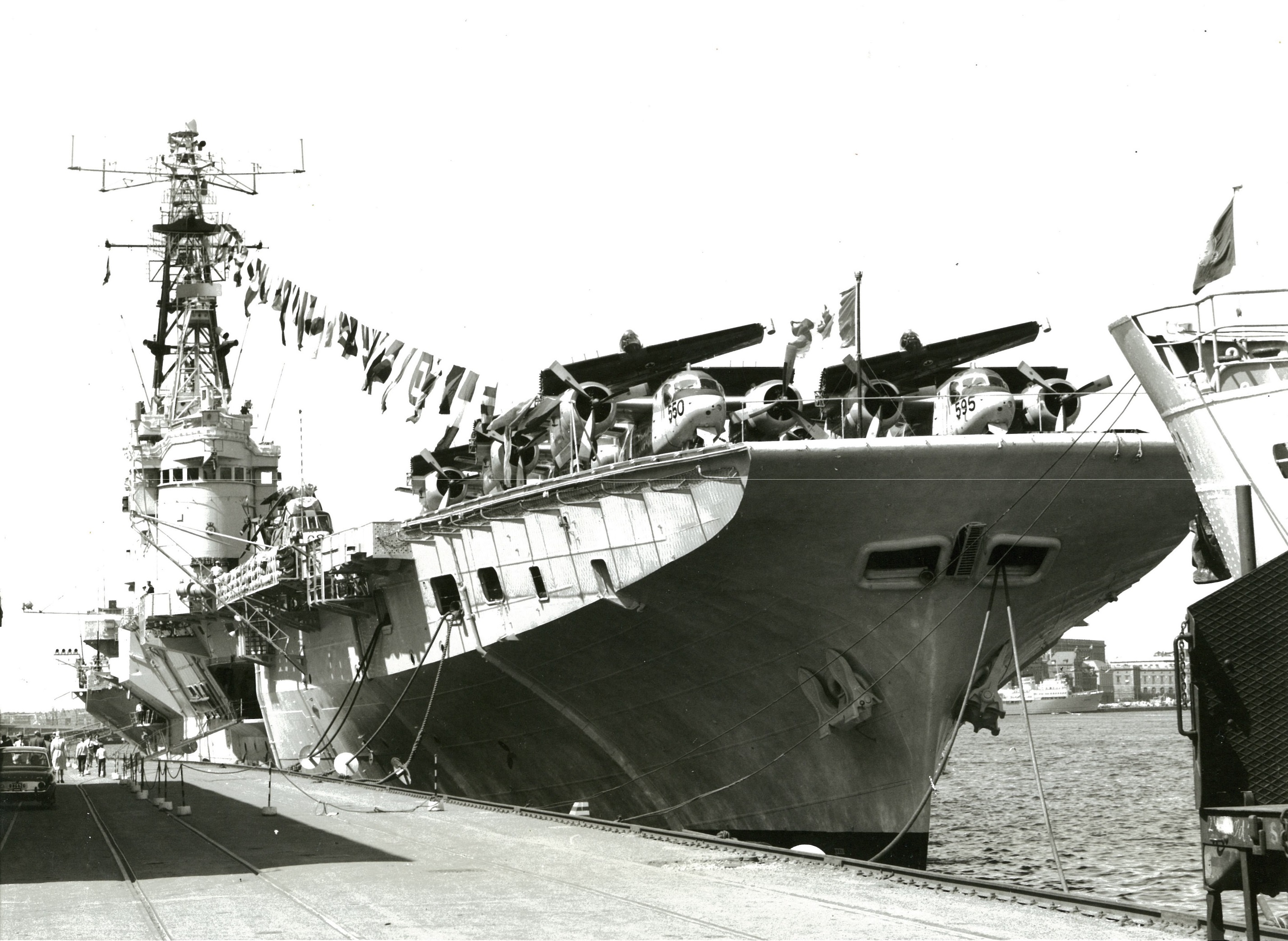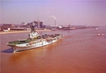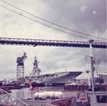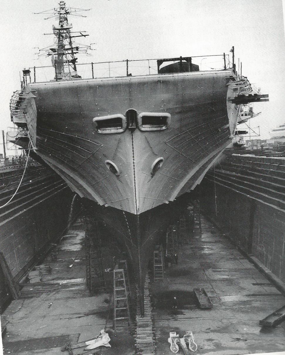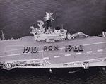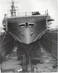 Built by Harland & Wolff Ltd., Belfast, Ireland, she was originally laid down as HMS POWERFUL. Construction on her had been suspended in 1946, but was restarted on 15 Jul 1952 and she was renamed HMCS BONAVENTURE after the bird sanctuary in the Gulf of St. Lawrence. Work on this ship had stopped three months after her launching in Feb 1945, with the result that when construction resumed in 1952, improvements could be built into her. The most notable of these was the angled flight deck, which provided a longer landing run without sacrificing forward parking space, and permitted the removal of the unpopular crash barrier. Also noteworthy were a steam catapult and a mirror landing sight, the latter going far toward eliminating human error in landing.